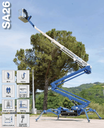 They are favourable in pricing, popular and diversely suited for various indoor and outdoor applications. BLUELIFT spider platforms are well-known for their advanced technology, their low overall weight, high performance and compact dimensions. Furthermore, they are easy to use.
